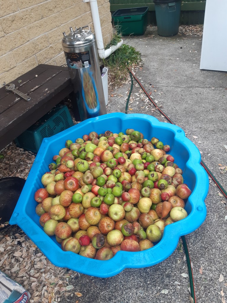 This year I invested in a scratter and press so I could start making cider. My trees are still too young to really provide any sensible quantities of fruit so I supplemented them with scrumped windfall fruit from trees I located around the village , I also put out a call on the community facebook group and achieved access to 2 other trees and my friend Martin harvested his apples for me. In addition via some circuitous means I got my hands on 20L of pasteurized Kingston Black must from Peckhams. I have been pressing about once a fortnight and so far have about 60L fermenting in the garage. I envisage 2 ciders coming out of this first vintage. Atarangi o Hemi Matenga (In the Shaddow of Hemi Matenga) which is the blend of village apples mostly grown in the lee of the Hemi Matenga ridge which protects us from the southerlies and encourages the clouds of the Tasman Ocean to give up its rain and Te Whenua Uru (The West Country) made from a blend of coxs , Kingston Black and village windfalls and is more in the west country scrumpy style. Both are being wild fermented with light sulphite addition. It has taken me over a decade to get to this point so I am pretty happy to be here. I have given the ciders names in Te Reo as much like my people the apple trees around here trace back to south west England but grow, live and die in Aotearoa. Fingers crossed what comes out the other side of winter is drinkable.