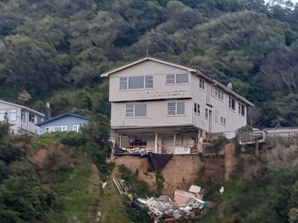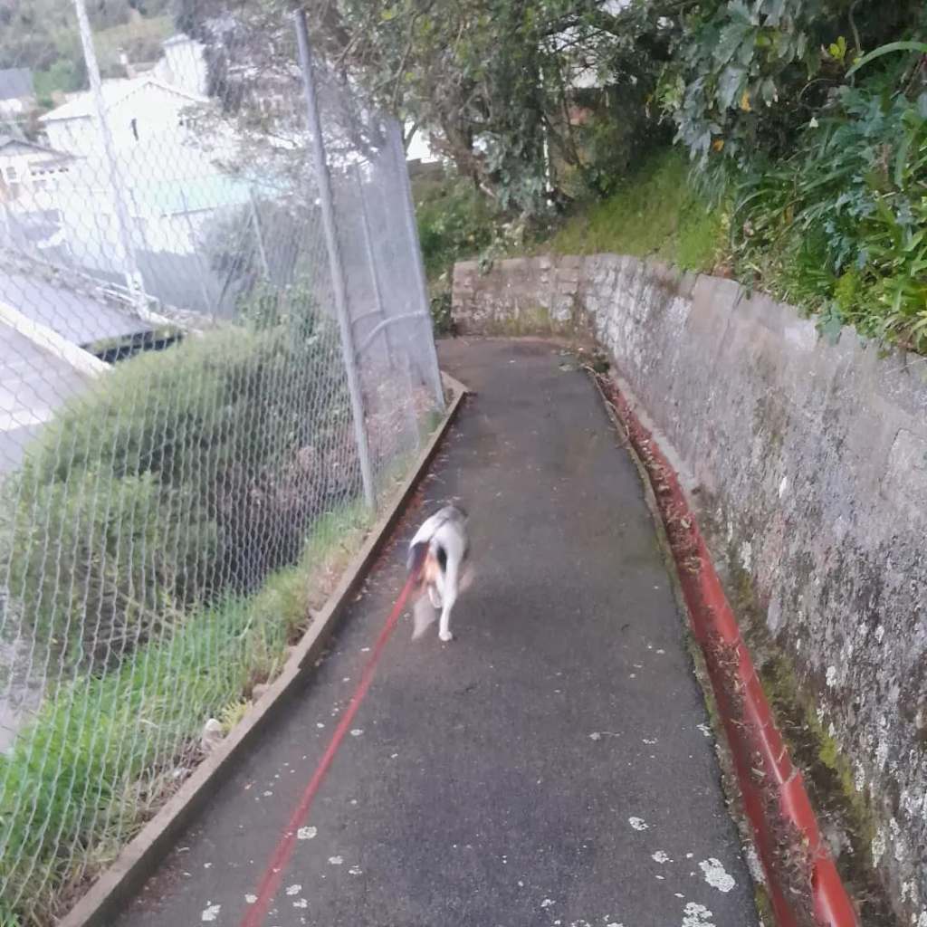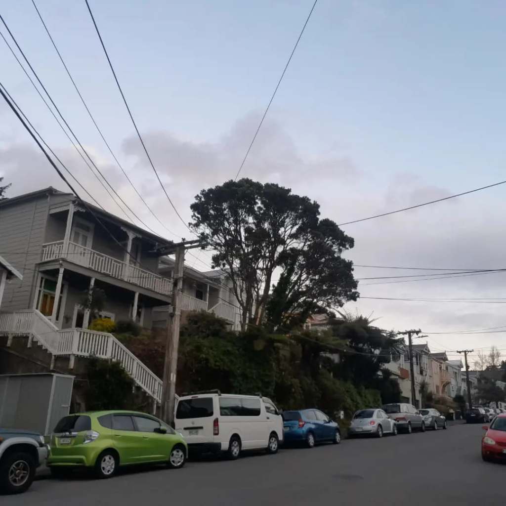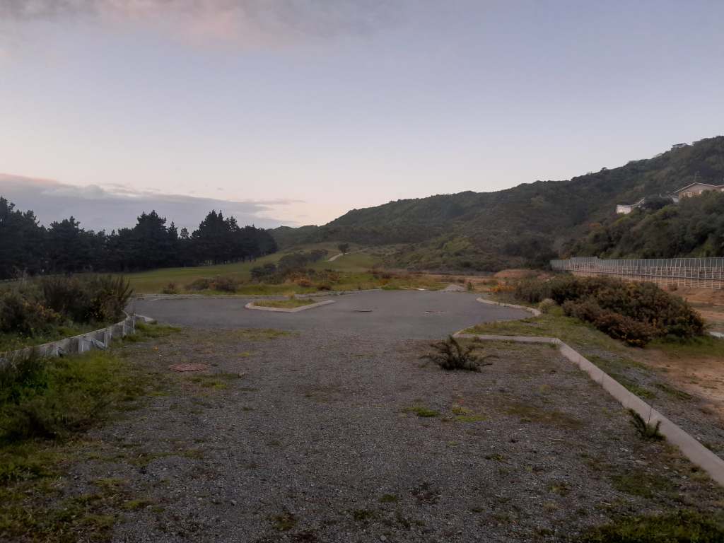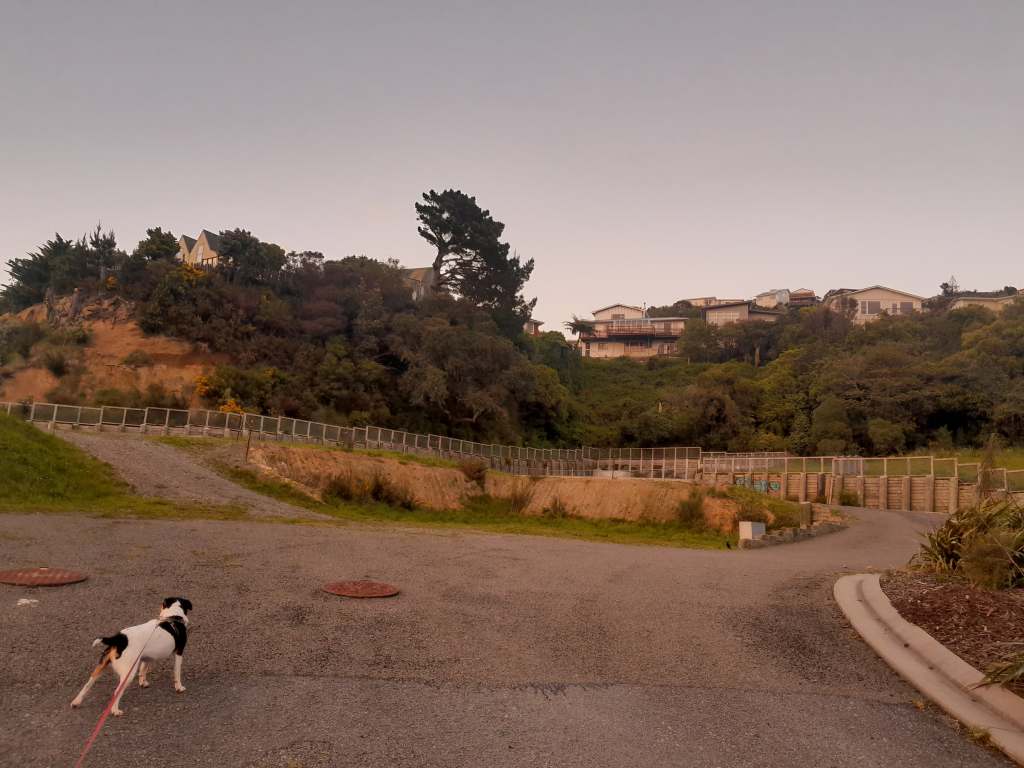 Both these presbyterian institutions are gone. A gate bars people from entering but I slip through a hole in the fence. Rubes revels in the morning breeze coming up the valley from Antarctica. The road is potholed and unkempt. Mysteriously there is a pile of horse shit in the middle of it. Kingston the suburb above has begun to give in to the inevitability of gravity. A decade ago it started sliding down upon Berhampore a little too hastily for comfort. The elderly were evicted , the wounded moved on. Now all that remains are marks where the roads went, sewer accesses , and tussock and gorse. A house still balances on the precipice , raining bits of its flesh down on the bank below. We walk back to Shannon’s. It’s time to leave my k9 baby in her care and fly.
