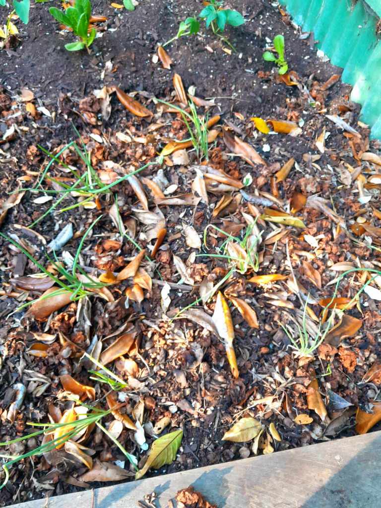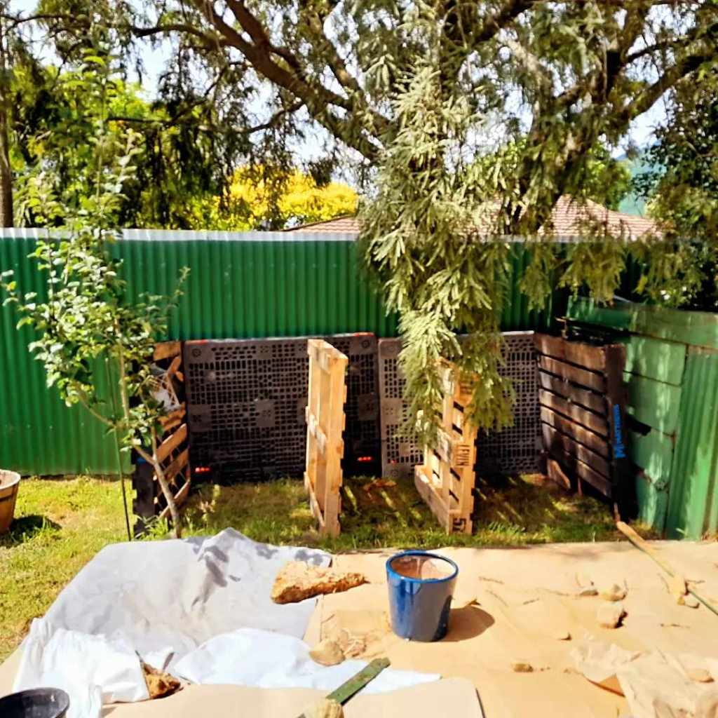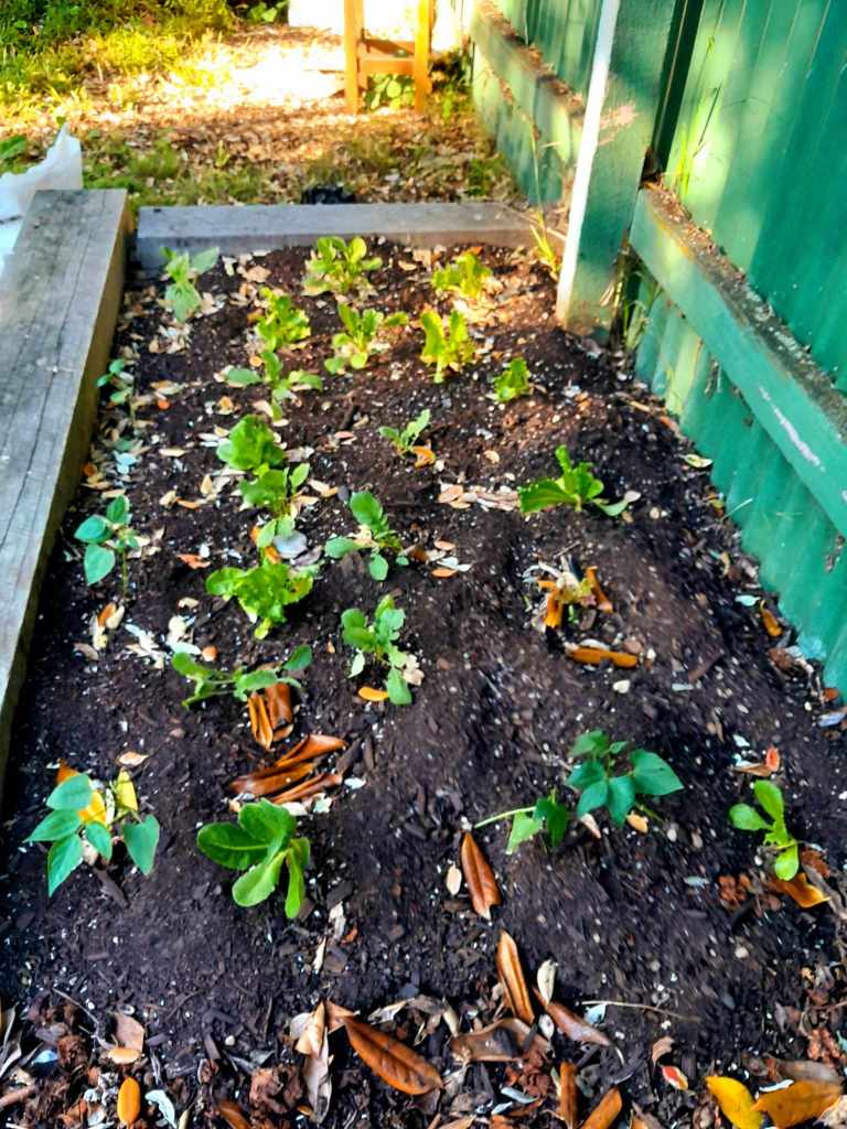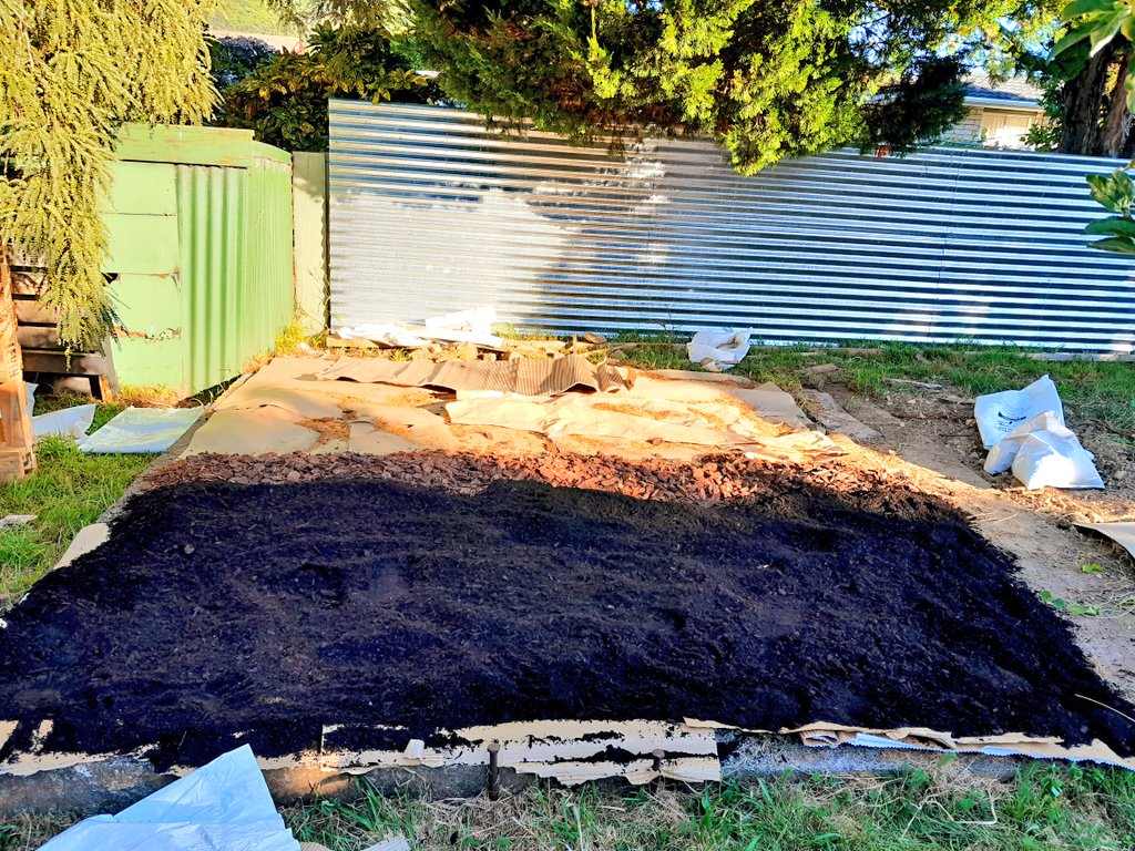 When I moved in here in 2015 I left the established concrete edged vegetable plot to go fallow. The time has come to bring it back to production. I have been indoctrinated in Charles Dowding’s No Dig method and have started collecting cardboard from work, laying it over the earth and weeds and mulching it in with compost and a little top soil to level out the dips. The old garden is divided into three with concrete pavers so I have broken in the first bed, divided it with a path to give access to the compost bays. I’m working on the second bed now. I already have three lines of celeriac in the first bed, soup mash and slaw awaits!