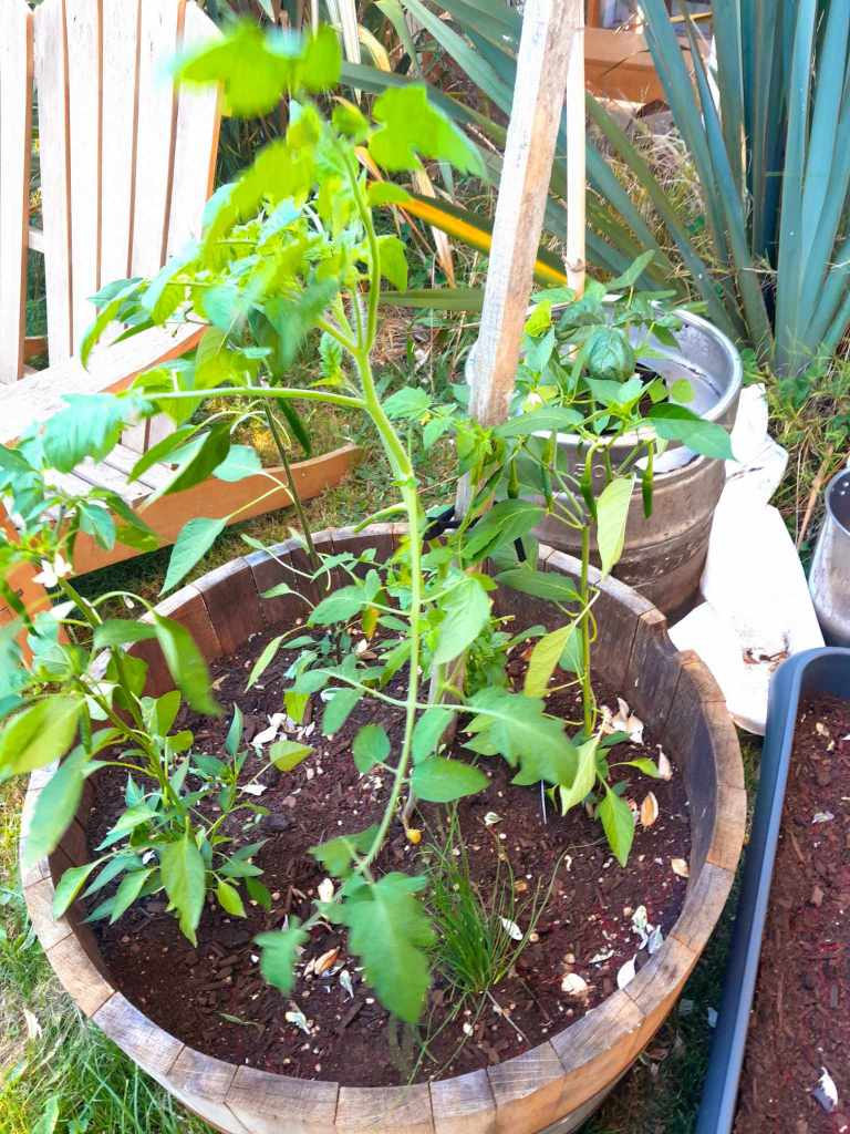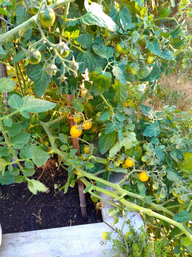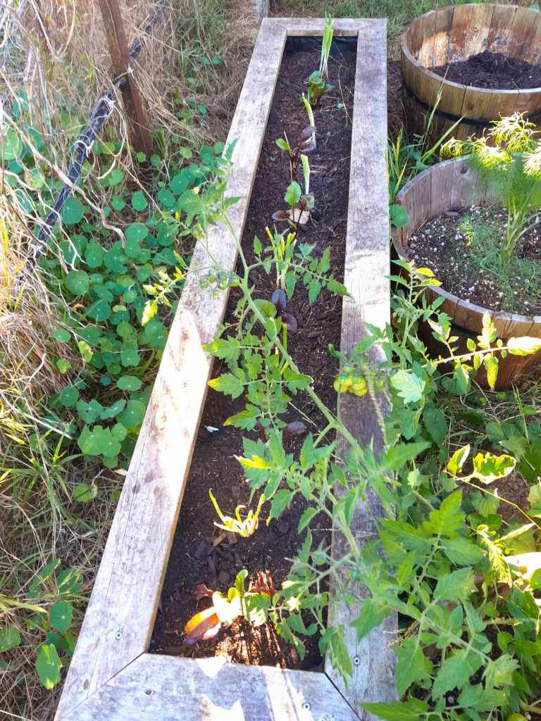 The tomato harvest is looking like it will be pretty decent . I have had a decent coriander seed harvest , I’m perhaps self sufficient for coriander seed for the year. I have a salad bed in with lettuce, radish and beans. Some onions as a wee trial. Beetroot inter planted with spring onions, and a kale and cavelo nero bed. I bought myself 2 wine barrel 1/2s for my birthday and after discovering they needed drainage holes the hard way I have tomatoes, chillis , and herbs in them. I have a bunch of dwarf borlotti beans in with the hope of an addition for winter pottages. I have horseradish growing enthusiastically in a tub.