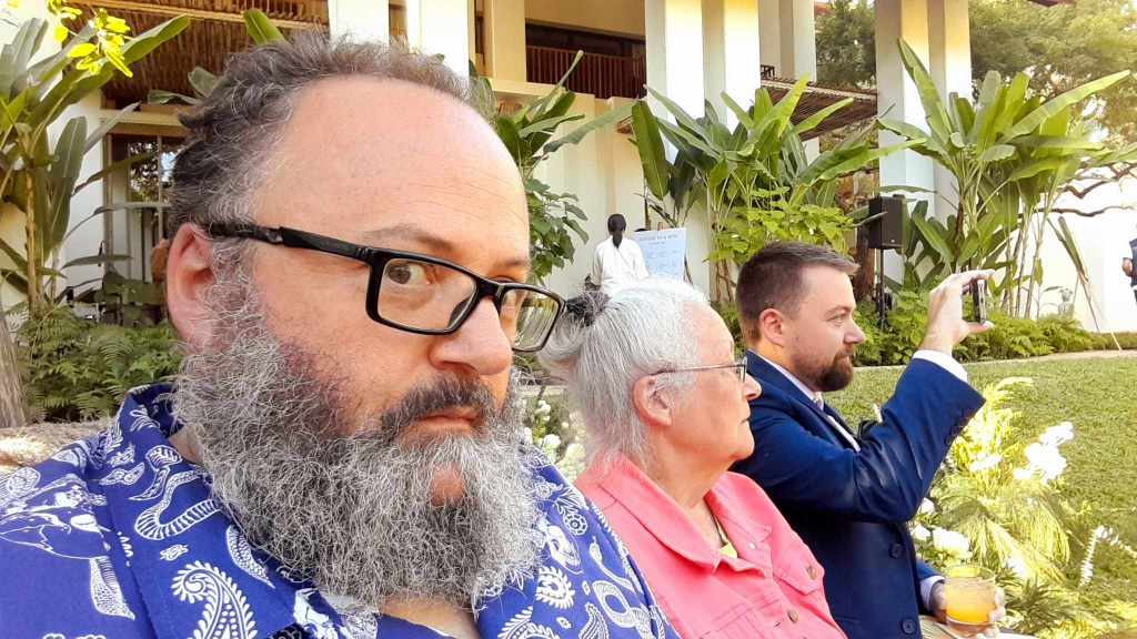 Mum and Robbie went off for a swim while I did some writing and took another luxurious bath. Afterwards we went to the tea terrace and had lunch. While everyone else opted for burgers I stuck to the Thai food and ordered a dish of stir-fried beef mince with chili , steamed rice and an egg. It was delicious and the waitress hustled back to warn me that the chili dressing in a ramekin was “very hot”, it wasn’t but it was lovely. As I ate my meal, I saw what looked like a clove in the stir fry, so I extracted it with my fingers to find it was a small nail or tack. Safety First.