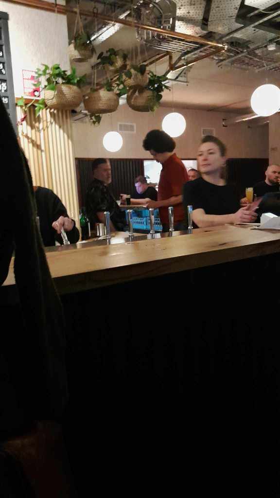 The Kernel taproom is all polyurethaned wood hues and long sleek tables. It is a Nordic look but not the recent white tile Nordic aesthetic but something more 1970’s and organic. I drank a historic stout and a grisette carefully avoiding the new generation American hops I can’t stand that were helpfully displayed clearly on the board.