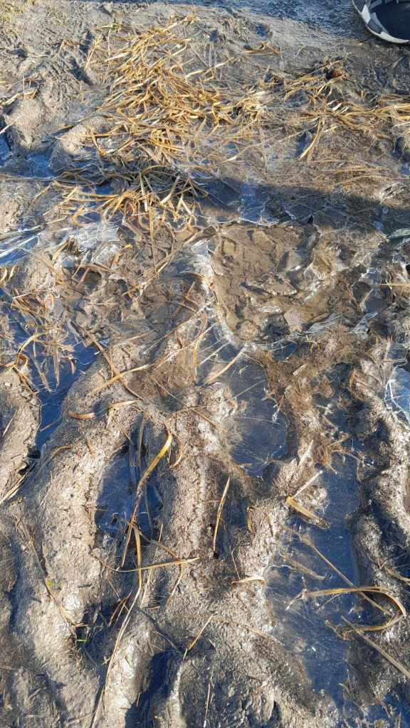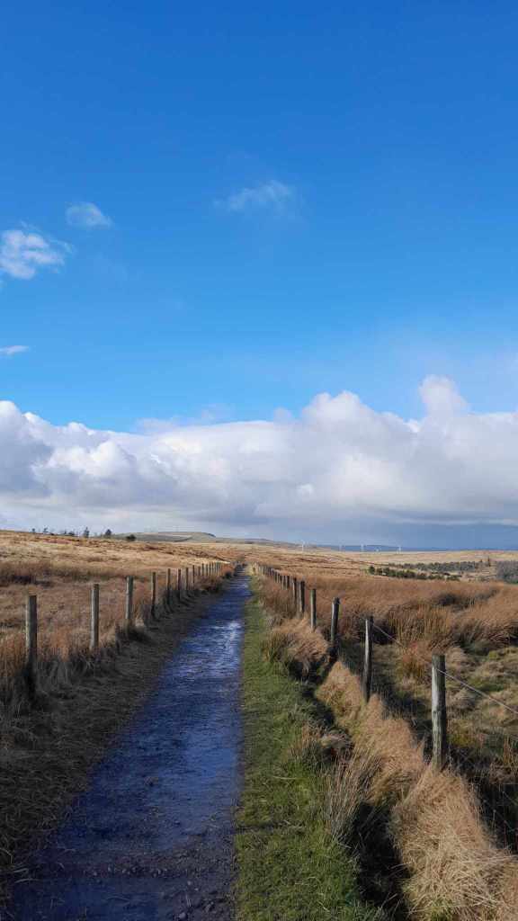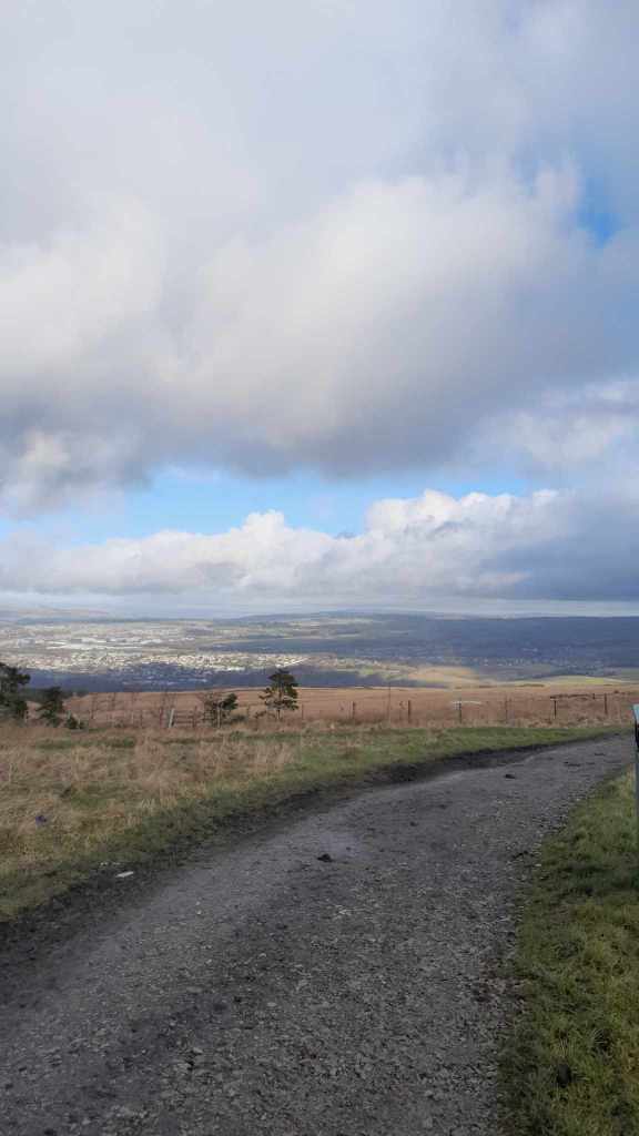 Our first destination was a sculpture known as the Singing Ringing Tree. The Singing Ringing Tree is made of pipes formed into the structure of a tree. It is sited up on the Pennines above Burnley. We drove north through Lancashire , through the town of Rawtenstall which I knew of as Jane Horrocks from Absolutely Fabulous was born there. Our path took us up into the Pennines till we were on a desolate ridge looking down on the city of Burnley. We parked in a half full carpark and made our way down a path with fenced farmland either side. The path dropped down the hillside before taking a righthand turn and extending towards the sculpture which we could see 100m or so away. We stepped over puddles which were frozen solid. Once we had dropped down the bank far enough to dissuade us from back tracking it was clear that we were not wearing enough layers. The thing that makes the British cold so soft is the lack of wind. Up here there was a decent breeze forcing the frozen air into us and it was bloody cold. Mum persevered like a trooper; my fingers started to go numb. We made our away along the track and reached the ‘tree’. The sculpture is renowned for not making noise, however on this day it was emitting a low haunting moan which totally suited the moment and vibe of the surrounds.