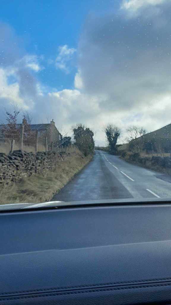 We made it back to the car without succumbing to frost bite. The heating was cranked up and we continued along our way. We drove through the range of hills through beautiful villages and hamlets which were clearly in decline. The expanse of All Creatures Great and Small style scenery was topped off with occasional blasts of sleet and hale alternating with the odd moment of wintery sun.