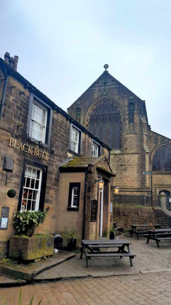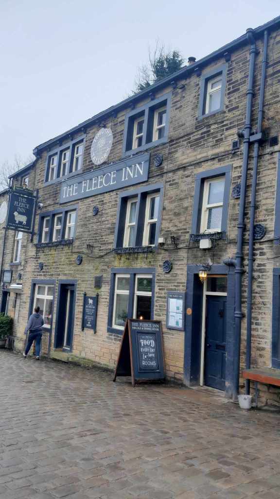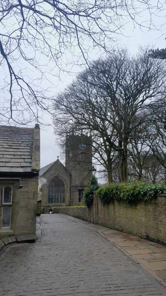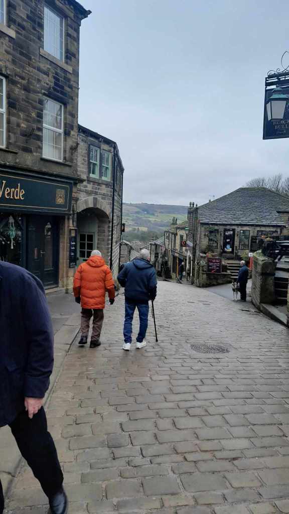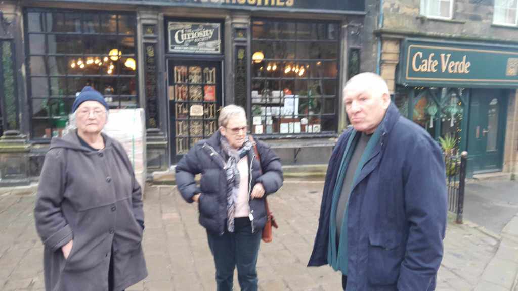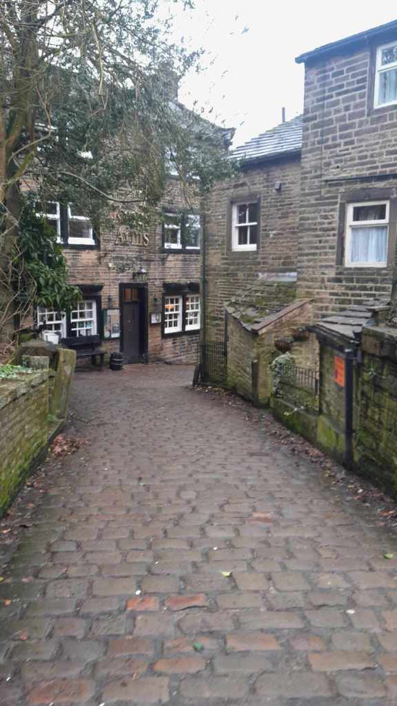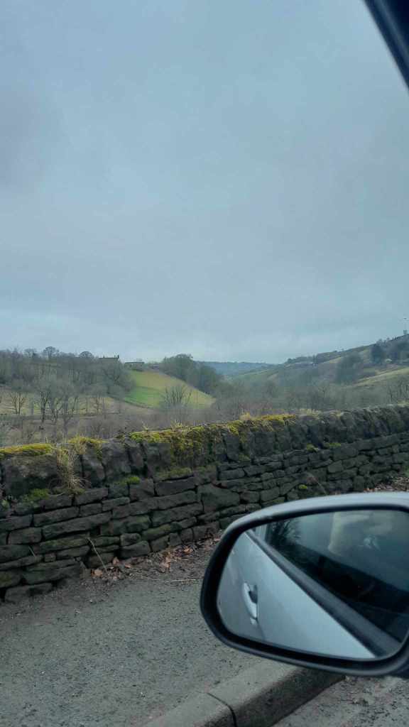 Today we were to be given a wee tour around the West Riding by David and Jackie, the parents of my friend Dan. They collected us from the CO-OP car park opposite the guesthouse and we found a more legitimate car park before heading to a tearoom for coffee. After caffeination we hit the road winding up back into the Pennines and along to Haworth where the Brontë Sisters penned their gothic masterpieces. We found a park and wandered down the steep main road. The pubs weren’t yet open, so we poked around a boutique chemists that was full of aromatic bath salts and finely sculpted Knick knacks all perfectly positioned to draw money from the passing schools of Heathcliff attracted ladies. I suspect if one wanted the morning after pill or hemorrhoid cream one would be out of luck however. David departed to go get the car to meet us at the bottom while we walked down the hill. After a fairly long wait he appeared with a smashed wing mirror. The tight vertical lanes had collected another scalp.