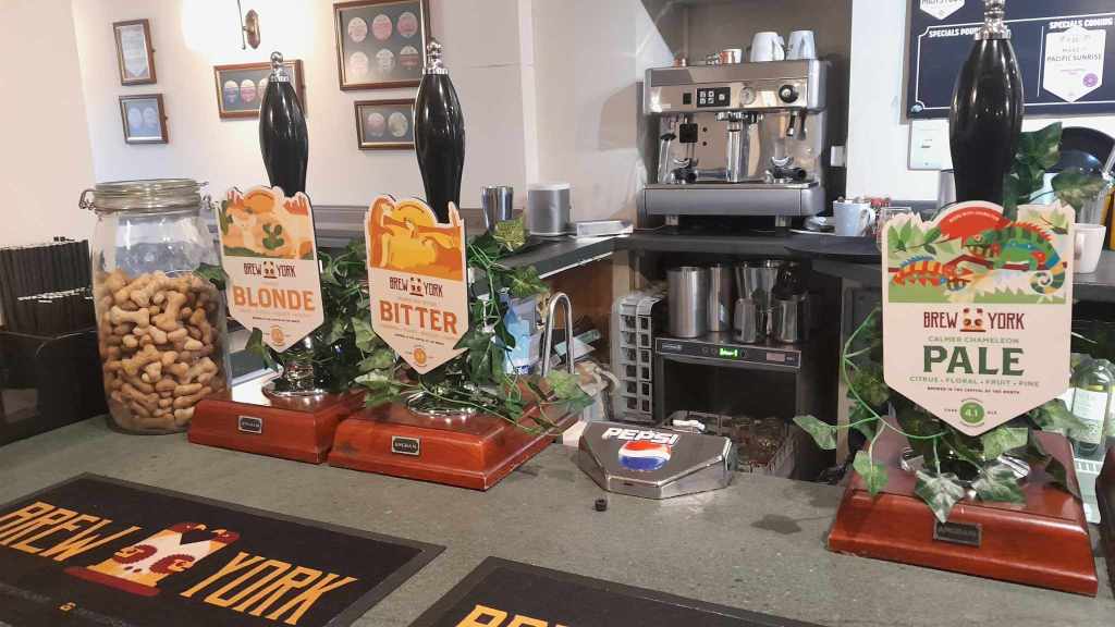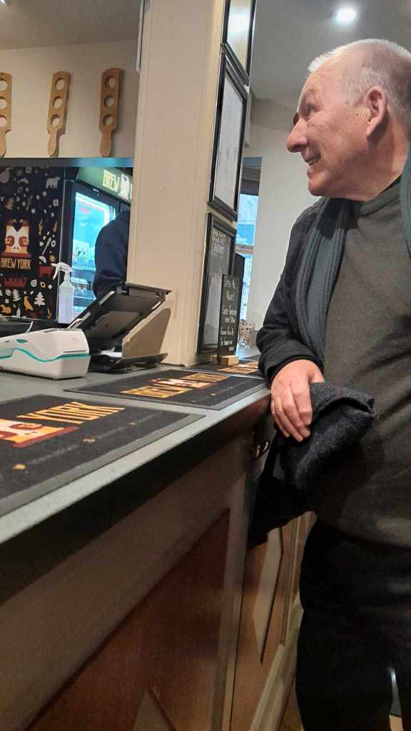 We drove on through Keighly, I looked out for Timothy Taylors but didn’t see it , and down onto the flat of Yorkshire. TV and having only visited the Calder Vally last time I was here had tricked me into thinking Yorkshire was all hills, here though was flat expanses of farmland much like southern Britain. Our destination was Otley where my dad’s cousin Christine was to have lunch with us. We got there a little early so we found a park near the Horse and Farrier pub which is owned by Brew York and had a beer. Then it was round the corner to the river for lunch at an Italian restaurant called Buon Apps. We were joined by Christine and my cousin of some remove Damien. There was an element of tension here as I knew David and Jackie needed to be home before dark and the lunch was taking the pace you would expect of a rare meeting of distant family. Luckily a plan was hatched and after we were dropped to a nearby train station where we could travel on to York leaving Jackie and David free to return home on the outskirts of Leeds. As we travelled to York it became clear that for the first time this trip my schedule was going to fall over. The day’s plan had been pretty optimistic as we were meant to be jumping on the train to Leeds to see Zak Avery after checking in to our guesthouse in York. I messaged Zak and cancelled that night , including cancelling a Bundobust booking, and rescheduled Leeds for the next day.