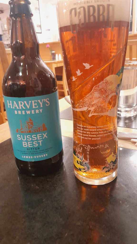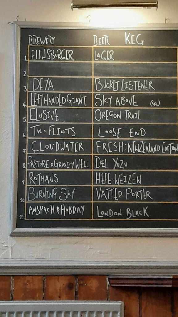 First stop was the Evening Star pub which is right round the corner from the station. I was here with Stu and Jessica Mason in 2019 after visiting Burning Sky. The Evening Star was the birthplace of the Dark Star Brewery (although Pitfield Brewery in London also has a claim) and in a way the birthplace of Burning Sky. Dark Star Hophead is no longer on the bar, evidence of the changing relationships now that brand has no brewery and is under Sapporo ownership I suspect. I had a couple of Burning Sky beers. The bar was early afternoon quiet. Just as we were getting ready to move on a group of older chaps started to flow in prompting a little banter along the lines of “nothing personal we just need to move on now, it’s not you it’s us”
