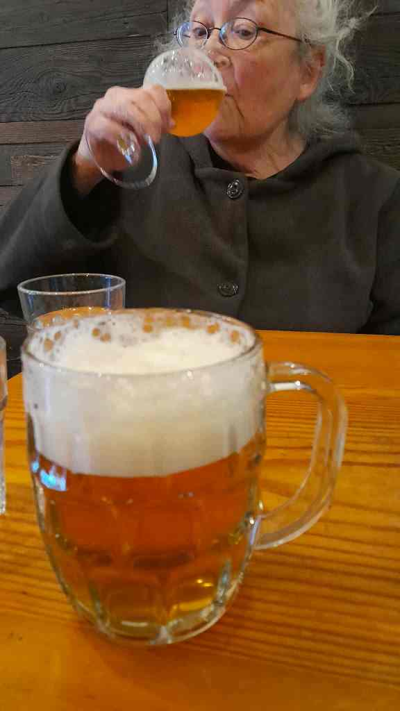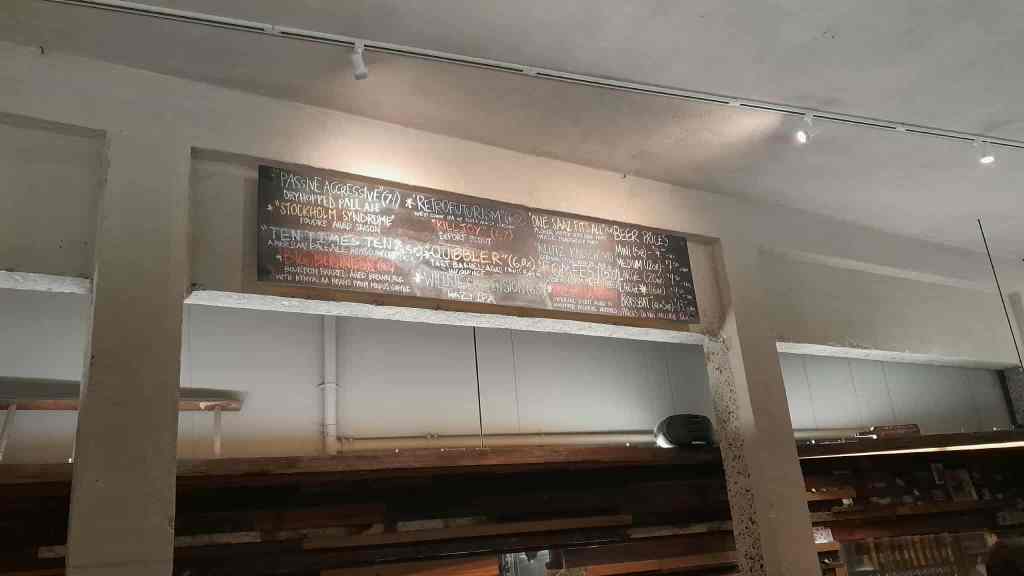 First stop a couple of blocks away was Czech beer specialists Luppolo. Situated in a sturdy brick building the bar area runs deep into the building length ways away from the windows creating a dark cozy space. Interestingly here again the brewery was not visible from the public bar. I love Czech style beers, they are a largely overlooked tradition in contemporary ‘craft’ circles. We enjoyed a fantastic Světlý Ležák pale lager from the side pour taps followed up by a delicious Tmavé dark lager. With this we had some outstanding pizza. These were the best Czech style beers I have had. The front of the beer menu was full of the Czech and a couple of German and Nordic style lagers, one had to turn the menu over (Pictured) to find the conciliatory pair of IPAs tucked away next to the soft drinks and wines. I could have sat here all day if I am honest, but we were here to explore.