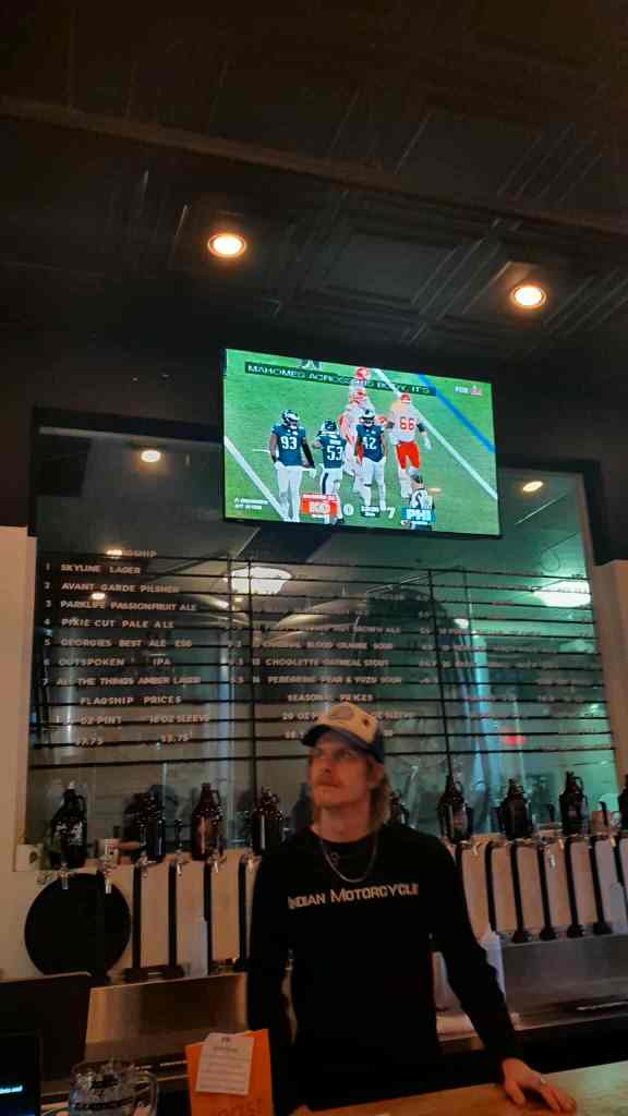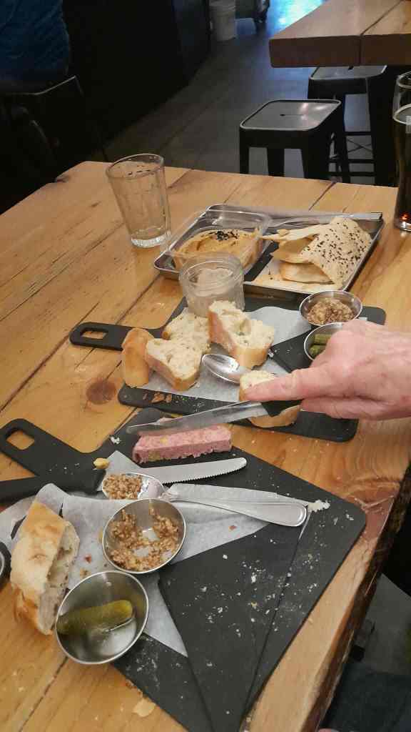 A block or three over was the Bomber Brewery. On our first night in town I had a wonderful ESB brewed by them so was keen to explore them further. Bomber was located right on the edge of the residential area. The tap room was warm and packed. It was Super Bowl Sunday and despite us being north of the border and it being a moment of Trump initiated North American friction; Canadians were embracing the US sporting spectacle. It was refreshing to be able to order from the bar, table service was grating on me after a month of English pub life. I started with a Czech style Pilsner from a side pour tap. It was probably a mistake to venture into this territory having just been blown away around the corner. This one wasn’t nearly as good. Flat and hazy , it tasted green and was a bit of a challenge. I followed it up with a very good ‘Nut Brown Ale’. We left the sports fans to their game and caught an uber to Brassneck Brewery. This brewery was a mixture of formed concrete and roughhewn wood plank panelling. We perched on a high table our backs to the wall and ordered a feed of French style antipasto. I had a very nice Foudre aged Saison and then the unintentionally Shihad themed Killjoy Export Stout. As we sat drinking and eating the inevitable gods of international travel started to haunt us, tugging at our eyelids and whispering soporific incantations in our ears. As I paid our bill I explained to the bar woman that we were jet lagged and not drunk. Soon we were back in the hotel where we slipped into sleep with an ease usually reserved for the innocent.