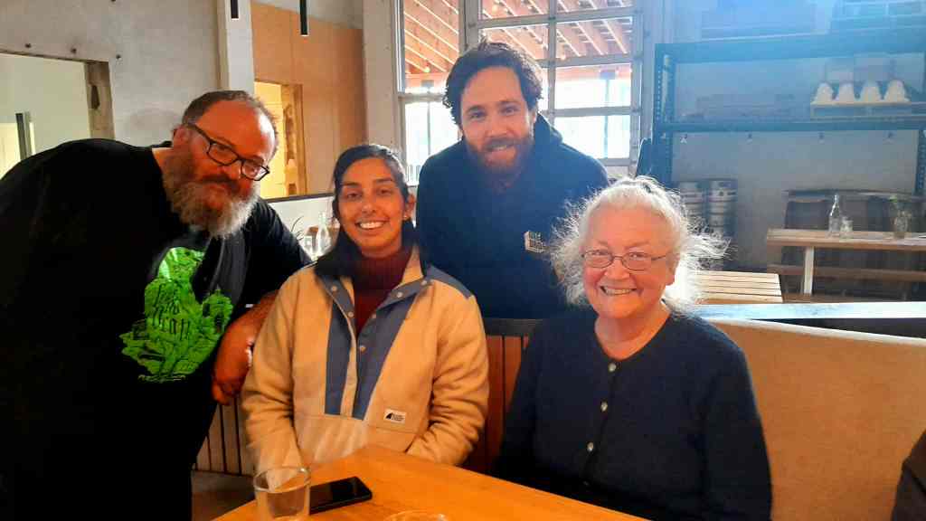 I know Manaia and Nisha from the Wellington beer community, also Manaia’s dad is Tim Hunt who is the most recent tattoo artist to mark my skin. Superflux specialise in hazy IPA, not my cup of chai, however they also produce some amazing crisp clean lagers that sing bright, herbal hop character. After a beer or two Manaia took us on a tour. As Manaia and me talked kit, mum and Nisha bonded over how they were both former students of Naenae College. The head brewer at Superflux sounds like a character. Despite the brewery space not really being visible from the taproom he doesn’t allow SOP’s to be on show anywhere insisting that anything beyond a standardised small font beer name on each tank is housed on the internet. The brewery is home to a hoard of pot plants with each one being a cutting taken from the one specimen that was potted up when the brewery began. We spent a great couple of hours there before setting off on foot to explore a couple more breweries in the neighbourhood.